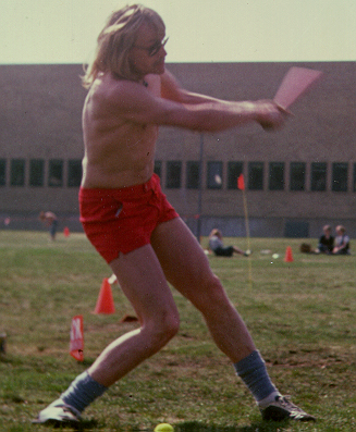 Hermii Vänner var först med att utveckla slagtekniken - här ett tidigt slag med tvåhandsfattning 1977.