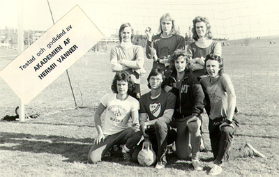 En av de allra tidigaste bilderna av Hermii Vänner - en unik fotbollsbild från höstterminen 1975. Noteras bör den särskilda etikett med vilken laget redan vid den tiden kunde bekräfta att man testat och godkänt utrustning.